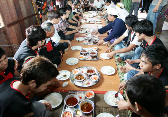 Bữa cơm thân mật trong đám cưới của người Chăm thường chỉ có cơm trắng và cà ri bò, hoàn toàn không có rượu, thay vào đó là nước chè. Món bánh tráng miệng do nhà gái chuẩn bị cũng rất được ưa chuộng