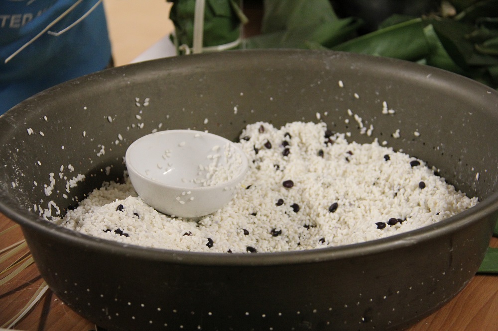 Bắt đầu gói bánh.