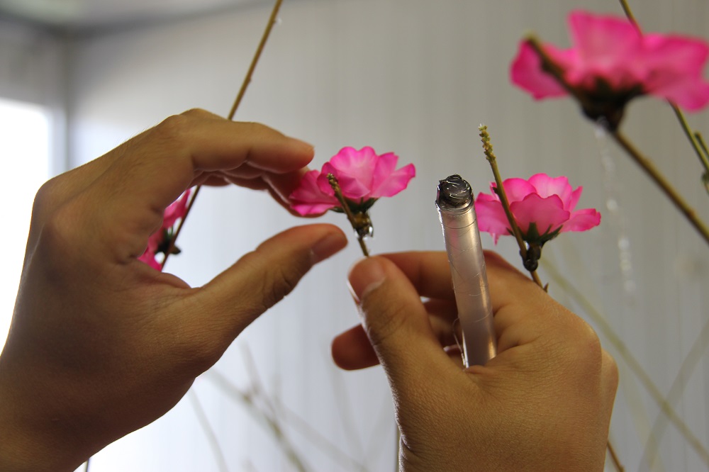 Cán bộ, bác sĩ BVDC2.1 tự gắn hoa giấy, hoa nhựa thay cho cành đào đón Tết.