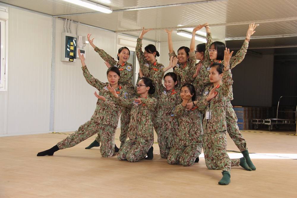 Giờ là lúc các nữ quân nhân của BVDC2.1 say sưa luyện tập các tiết mục văn nghệ chào đón năm mới.