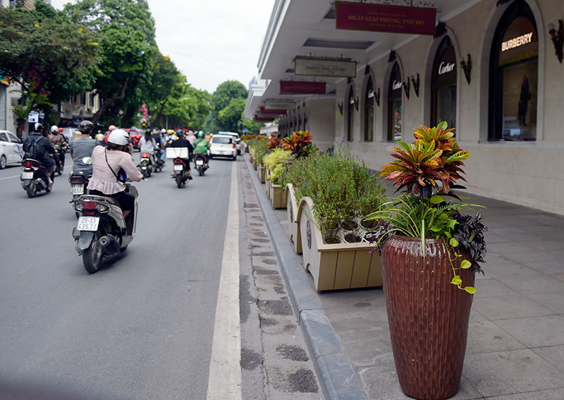 Trên nhiều tuyến phố, hoa tươi được trồng mới tạo ra những mảng màu sắc tươi mới.
