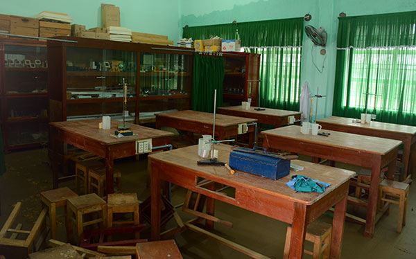 Bàn, ghế của Trường THCS Nhơn Hòa, phường Nhơn Hòa, thị xã An Nhơn, Bình Định vướng nhiều bùn đất