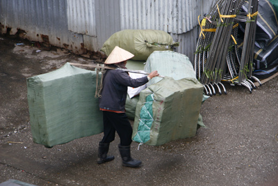 Dù lạnh buốt tay chân nhưng cứ có việc là những người phụ nữ gánh thuê lại ào ra