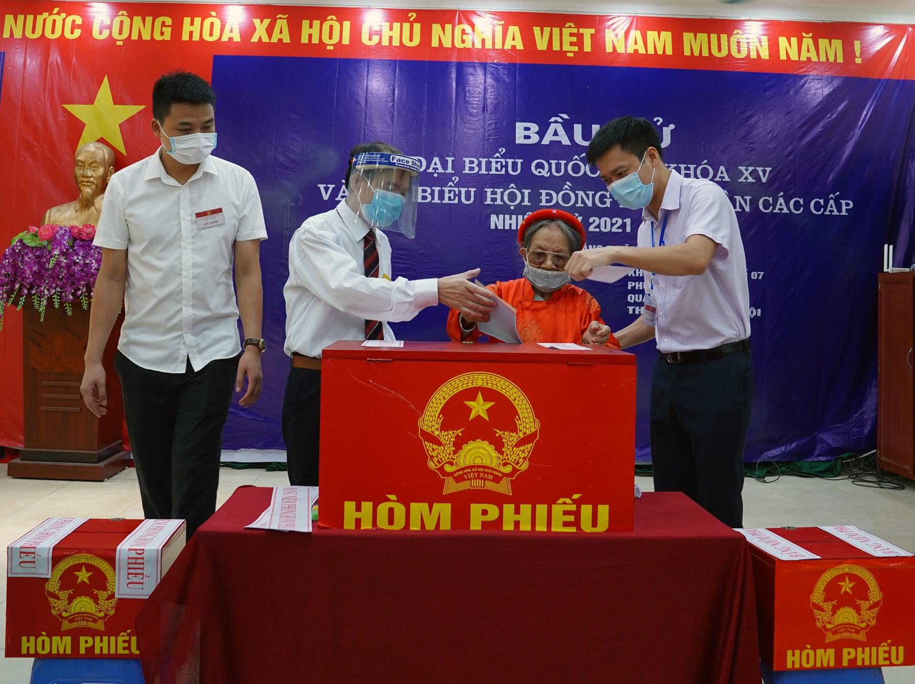 Cử tri tham gia đi bỏ phiếu bầu cử đại biểu đại biểu Quốc hội khóa XV và đại biểu Hội đồng nhân dân các cấp nhiệm kỳ 2021-2026. Ảnh: Viết Chung.
