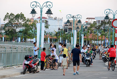 Chiều 5-4, có rất nhiều người ra hóng mát dọc kênh Tân Hóa-Lò Gốm.