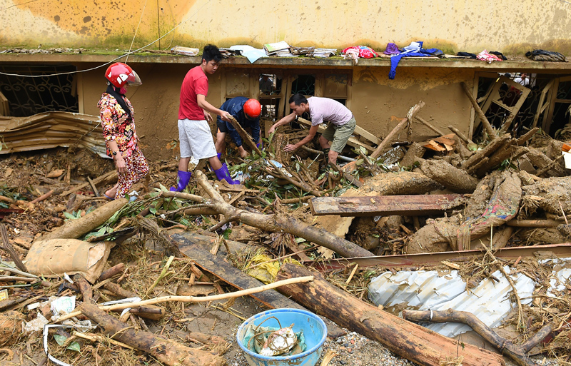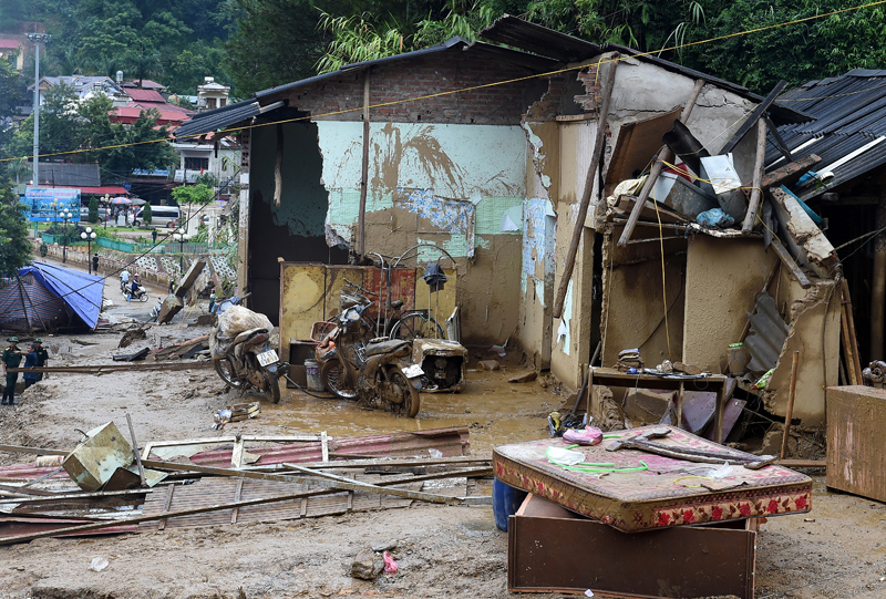 Lũ quét qua phá hủy nhiều công trình công cộng, nhà dân và cướp đi nhiều tài sản giá của đồng bào.