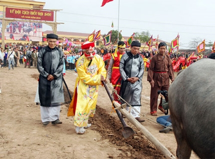 QĐND Online: Sớm mồng 7 tết Tân Mão, tại xã Đọi Sơn, huyện Duy Tiên (Hà Nam) tiếng trống Đọi Tam lại rộn rã vang trời mở đầu cho lễ hội Tịch điền (lễ hội xuống đồng) năm 2011. Lễ hội tái hiện hình ảnh vua Lê Đại Hành đích thân cày ruộng trên quê hương Đọi Sơn, mở đầu phong tục đẹp để các vị vua triều đại sau noi gương khuyến nông.