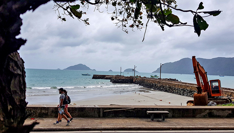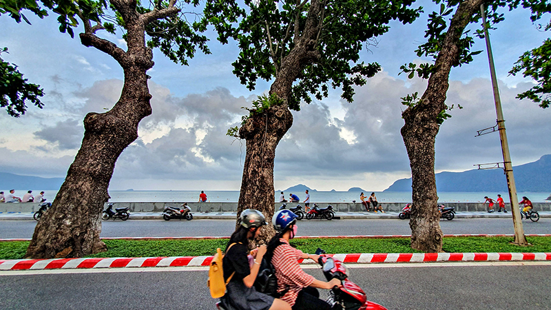 Buổi sáng trên con đường ven biển với khí hậu mát lành.