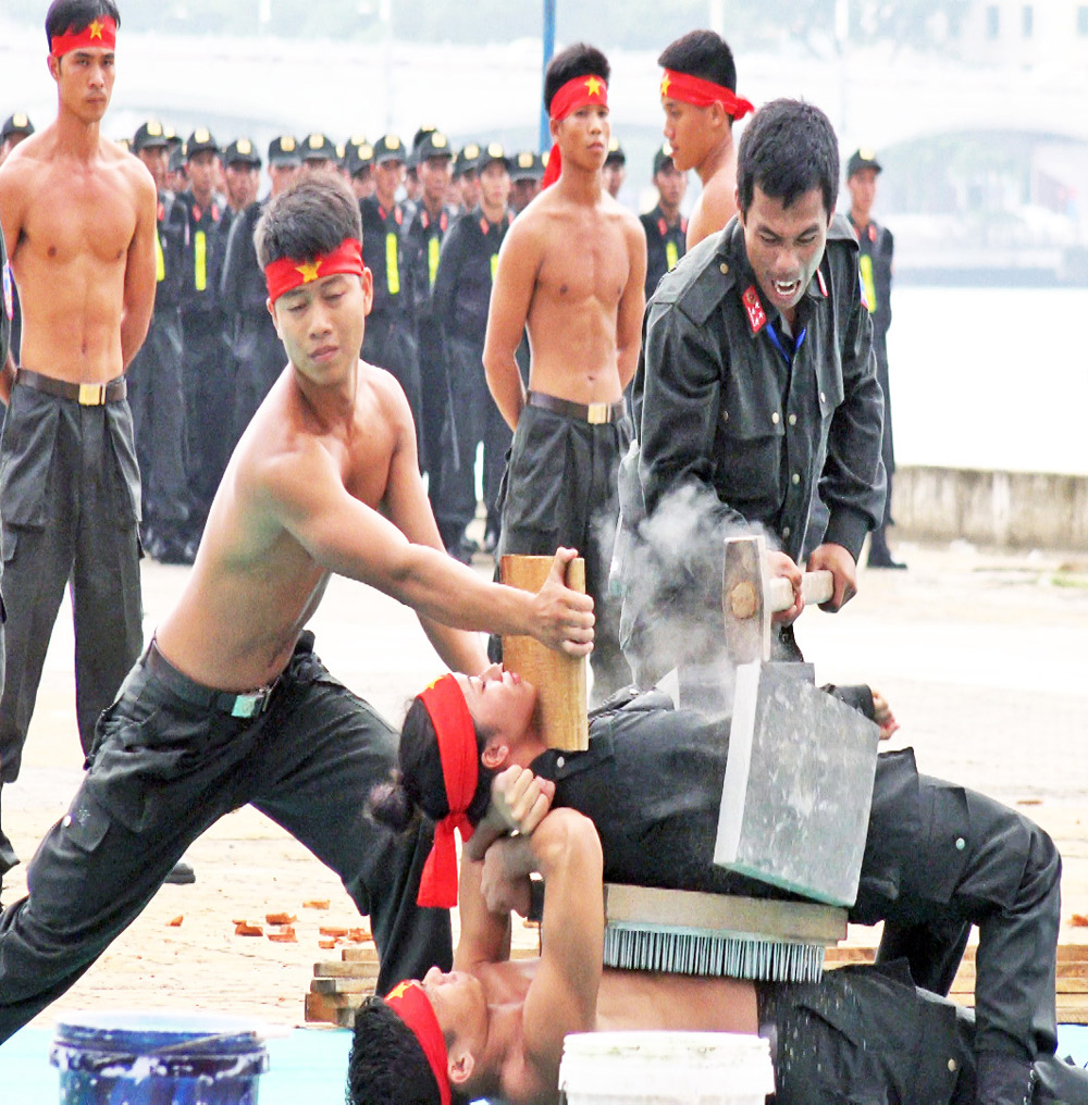 Chiến sĩ Cảnh sát cơ động biểu diễn khí công.