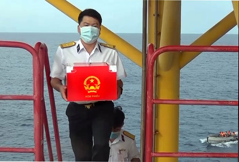 Rời bến từ ngày 4-5, tổ bầu cử sớm của Vùng 2 Hải quân trên hai tàu Trường Sa 04 và Trường Sa 19 đã đưa những lá phiếu đến với cử tri trên các nhà giàn DK1 và các tàu đang thực hiện nhiệm vụ bảo vệ chủ quyền biển, đảo trên thềm lục địa phía Nam. Đến hết ngày 16-5, 100% cử tri trên nhà giàn và tàu trực đã thực hiện trách nhiệm, quyền và nghĩa vụ của người công dân.