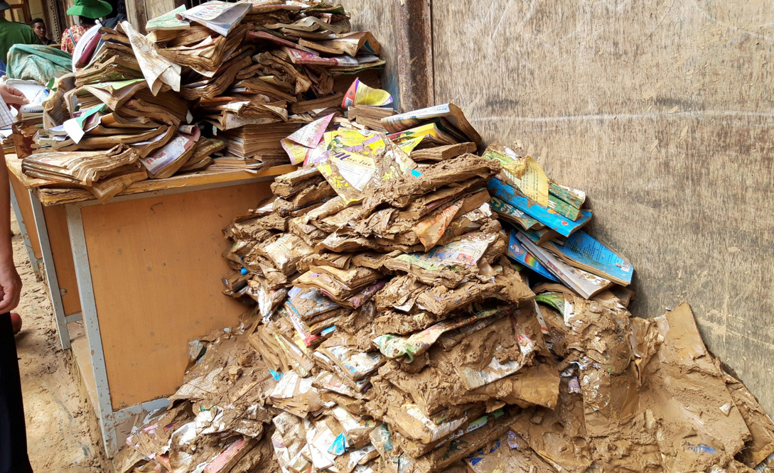 Thiết bị dạy học, sách vở hầu như bị hư hỏng hoàn toàn.