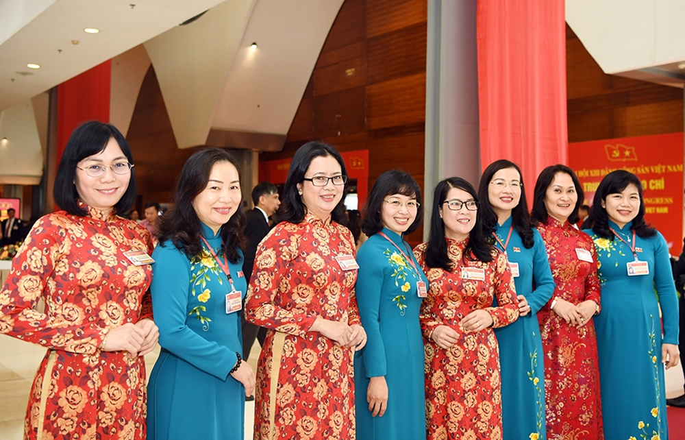 Đại biểu nữ tại Đại hội với hình ảnh đẹp thể hiện bản lĩnh và trí tuệ phụ nữ Việt Nam trong sự kiện chính trị trọng đại của đất nước.