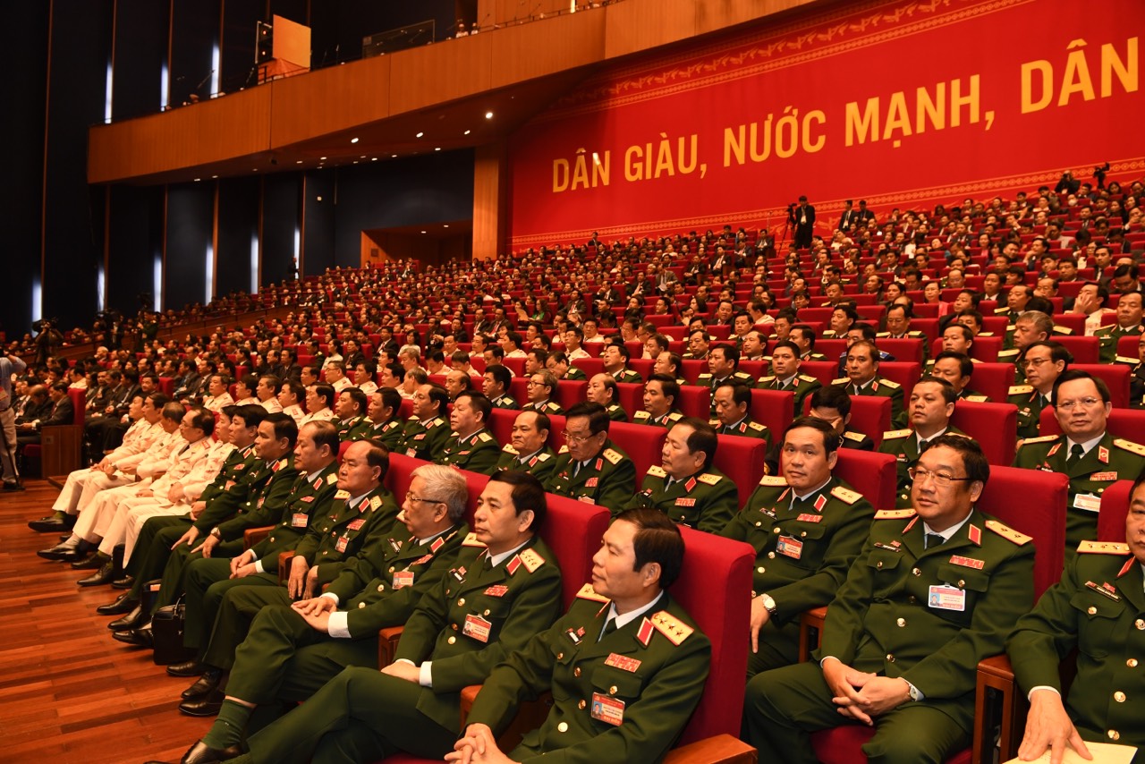 Thượng tướng Nguyễn Trọng Nghĩa, Ủy viên Trung ương Đảng, Phó chủ nhiệm Tổng cục Chính trị và Thượng tướng Trần Quang Phương, Ủy viên Trung ương Đảng, Phó chủ nhiệm Tổng cục Chính trị, đại biểu đoàn Đảng bộ Quân đội tham gia bỏ phiếu.