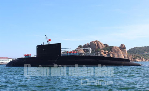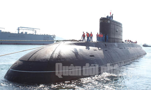 QĐND Online - Chiều 3-1, tàu ngầm lớp kilo HQ-182 mang tên Hà Nội đã hạ thủy thành công. Trải qua hơn 40 ngày vượt biển trên con tàu vận tải Rolldock Sea, đến ngày 1-1, tàu ngầm Hà Nội đã được đưa về Vịnh Cam Ranh an toàn.