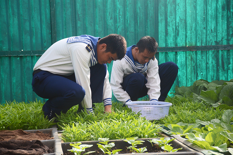 Bất chấp nắng gió, mưa bão khắc nghiệt nơi đảo xa, những luống rau xanh do chính bàn tay các cán bộ, chiến sĩ tại Đảo Đá Tây A chăm bón cho thu hoạch cao, cải thiện bữa ăn, tăng chất dinh dưỡng cho bộ đội.
