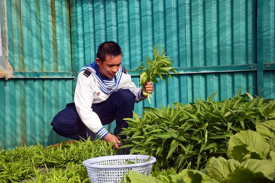 Rau ở Trường Sa khá đa dạng như rau cải, rau muống, đậu đũa, rau dền, rau đay, mồng tơi, mướp...
