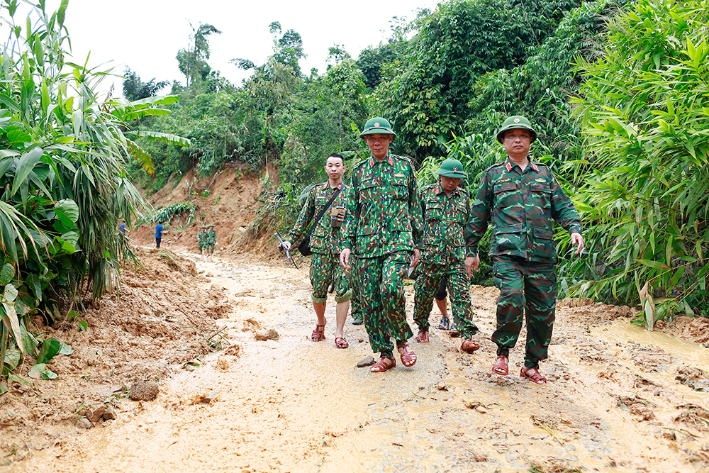 Lãnh đạo Quân khu 4 tiếp cận hiện trường để đánh giá và chuẩn bị phương án cứu hộ-cứu nạn.