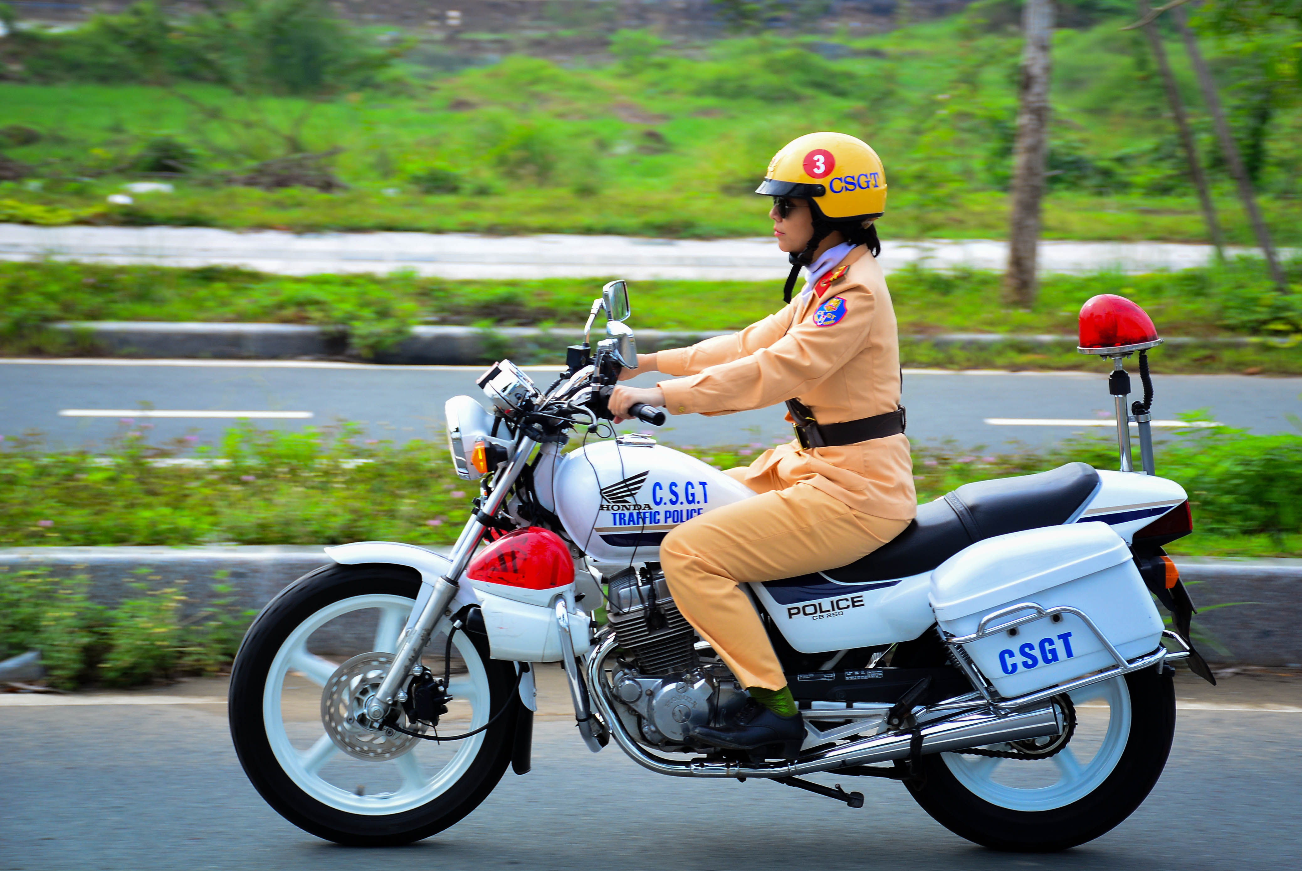 Nữ CSGT được hướng dẫn điều khiển lái xe mô tô thuần thục.