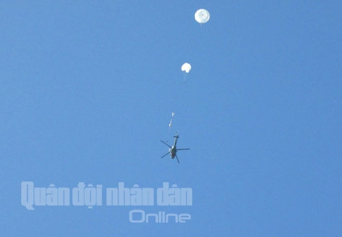 "Hoa" dù bung nở dọc đường bay của chiếc trực thăng.