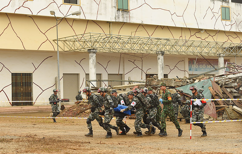QĐND Online - Trong khuôn khổ các hoạt động Giao lưu hữu nghị quốc phòng biên giới Việt Nam - Trung Quốc lần thứ 5, sáng 20-11, Quân đội Việt Nam và Trung Quốc đã tổ chức diễn tập chung về cứu trợ thảm họa, dịch bệnh trên biên giới.