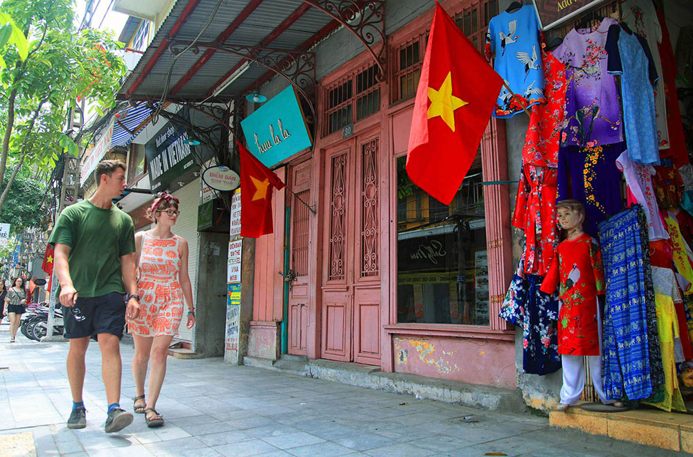 Khu vực phố cổ Hà Nội vào dịp lễ, tết, các con phố treo đỏ rực cờ cũng là nét độc đáo khiến du khách nước ngoài thích thú.