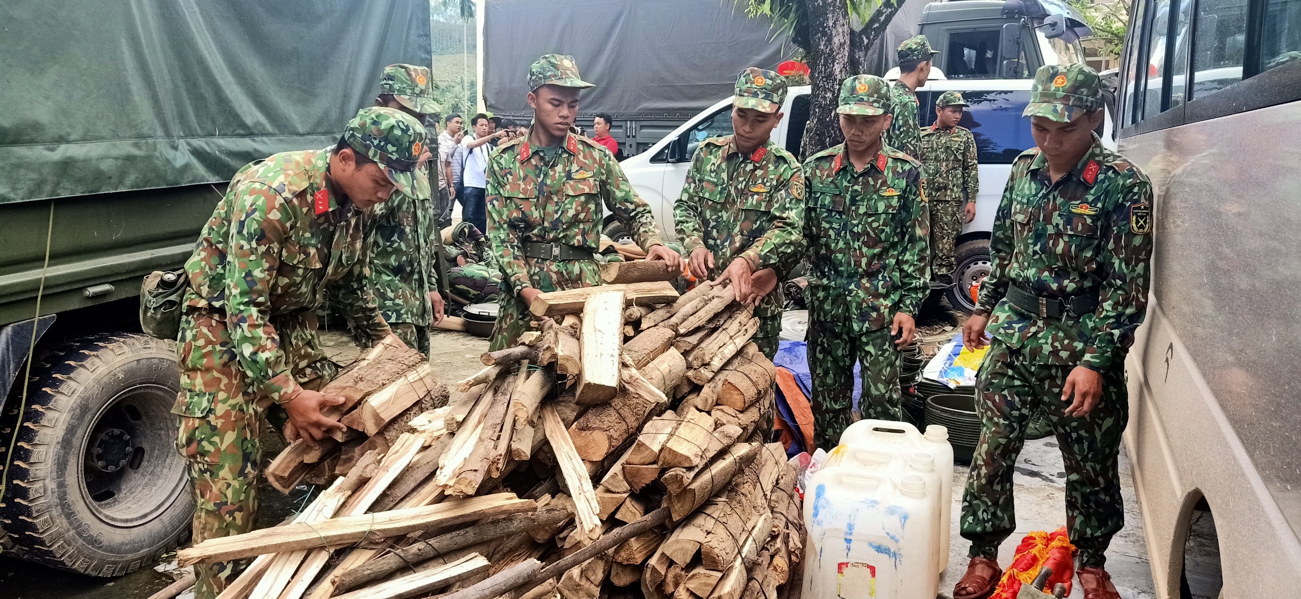 Các đơn vị chuẩn bị quân tư trang, thiết bị vật dụng, lương thực lữ đoàn công binh 270, quân khu 5 cơ động vào tìm kiếm cứu nạn