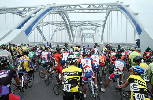 Đoàn đua bắt đầu diễu hành khoảng 8km từ Công viên Lê-nin đến cầu Đông Trù, huyện Đông Anh, thành phố Hà Nội.
