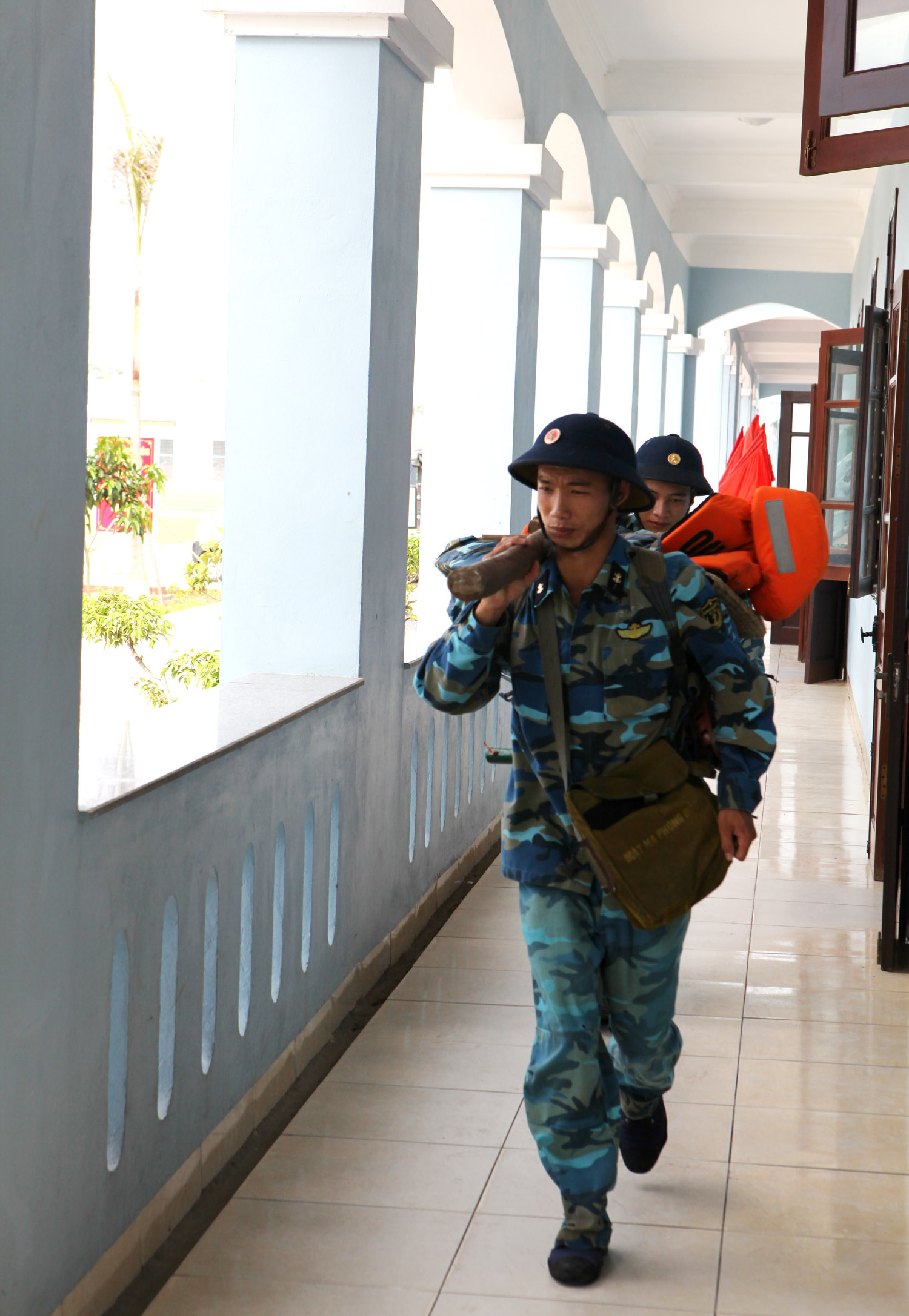 Chuẩn bị nội vụ, tư trang trước khi hành quân ứng cứu nhân dân.