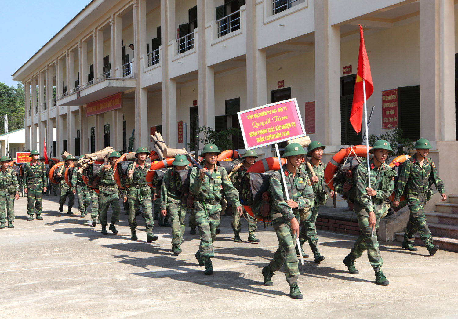 Cán bộ, chiến sĩ toàn đơn vị nghe chỉ huy quán triệt nhiệm vụ trước khi hành quân.