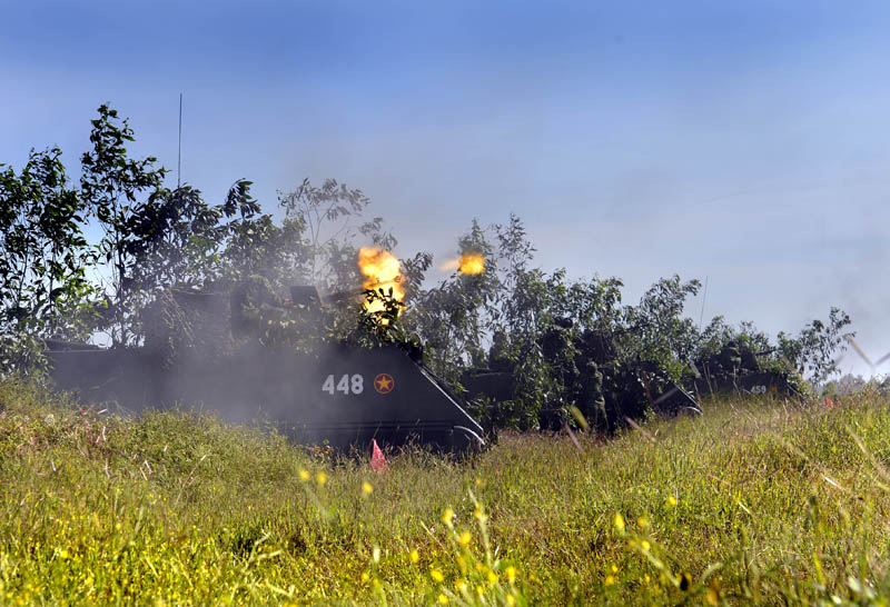 Xe thiết giáp khai hỏa tiêu diệt mục tiêu.