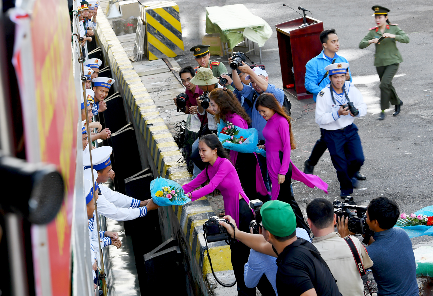 Tranh thủ tác nghiệp trên cầu cảng Cam Ranh trước giờ ra đảo.