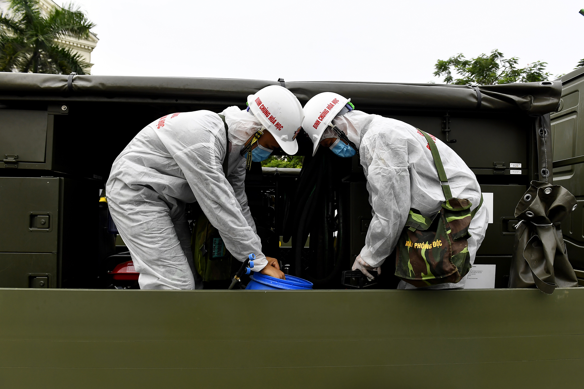 Bộ tư lệnh Binh chủng Hóa học huy động lực lượng lớn nhất tham gia phun khử khuẩn.
