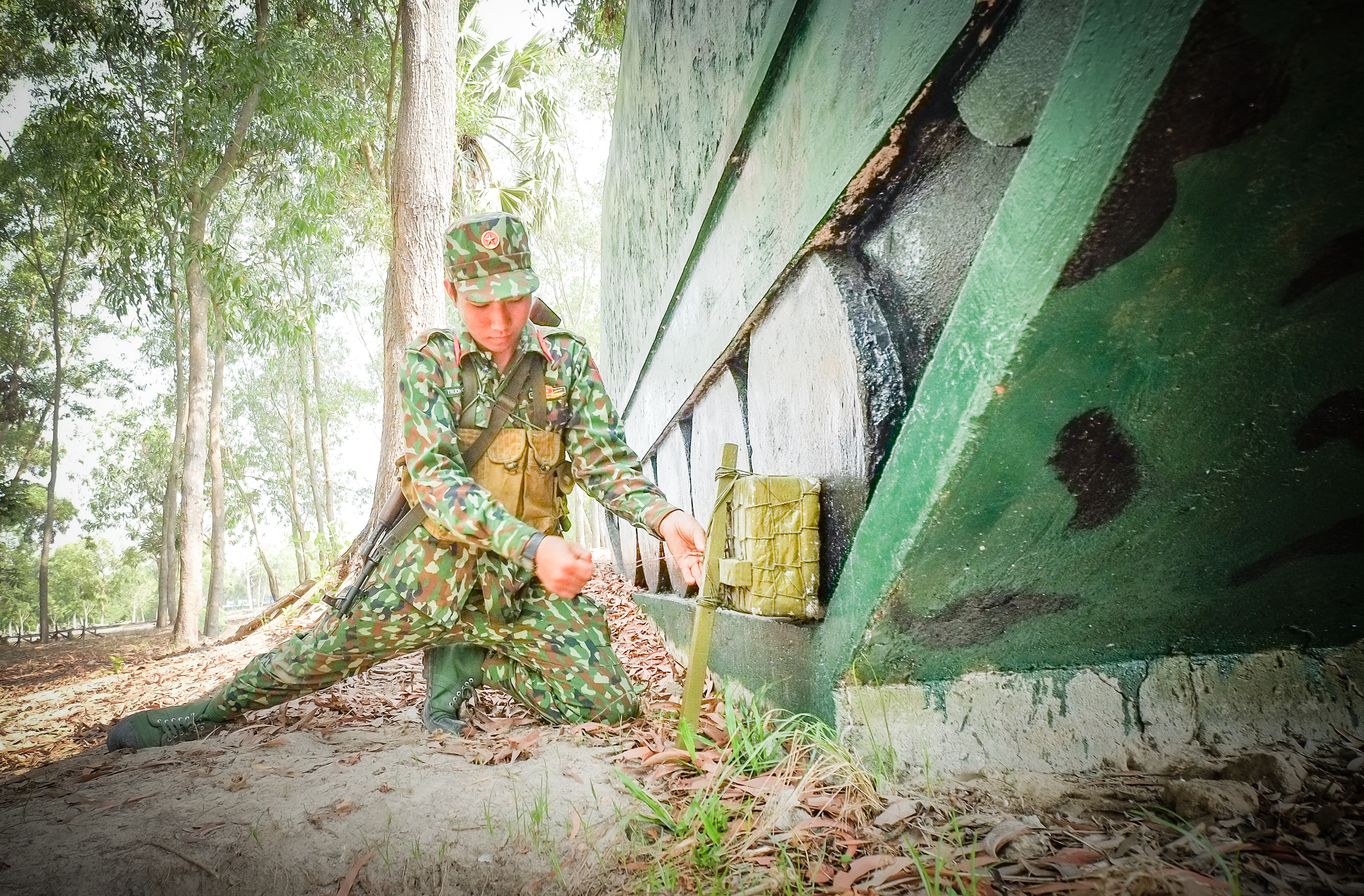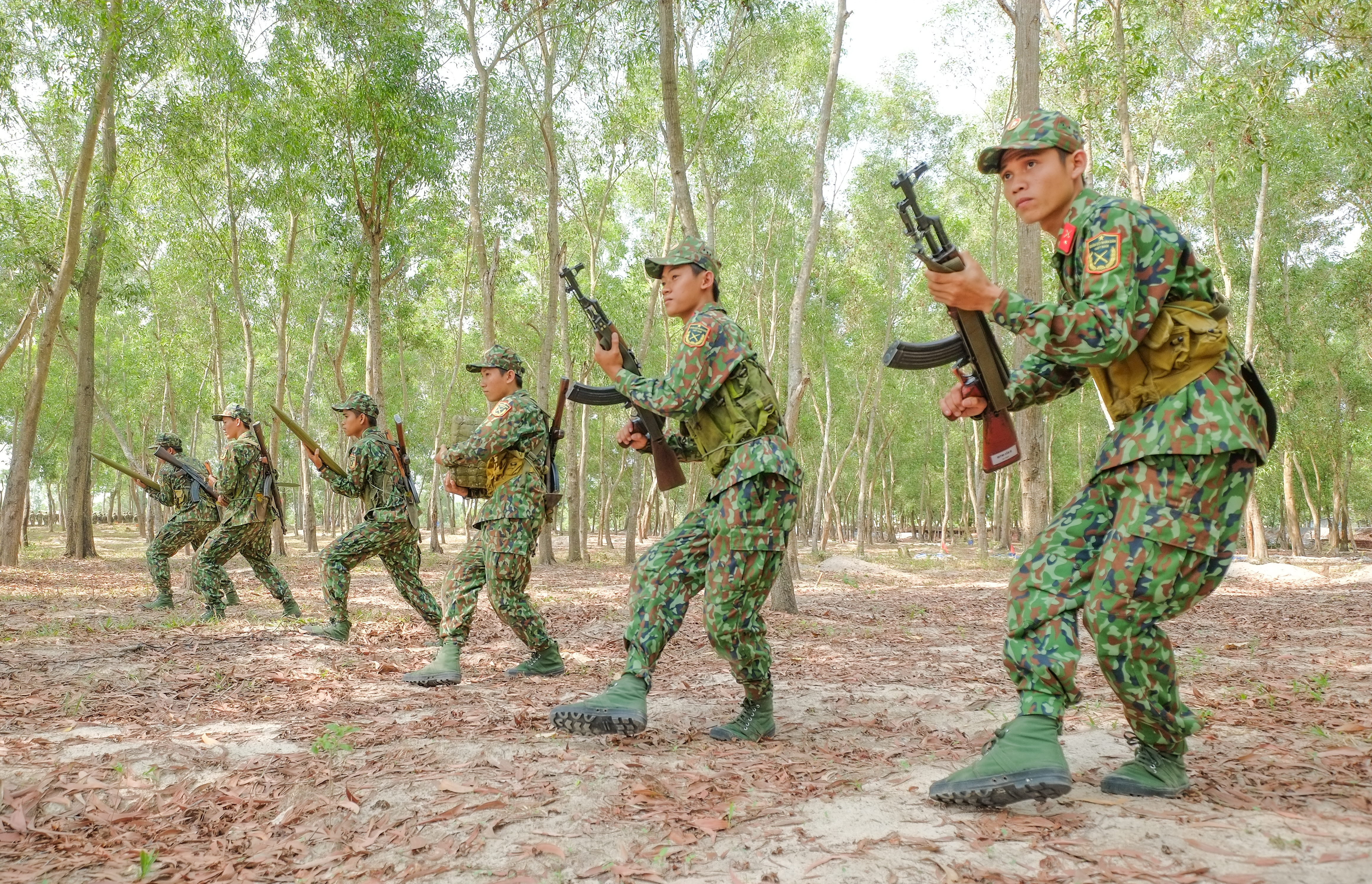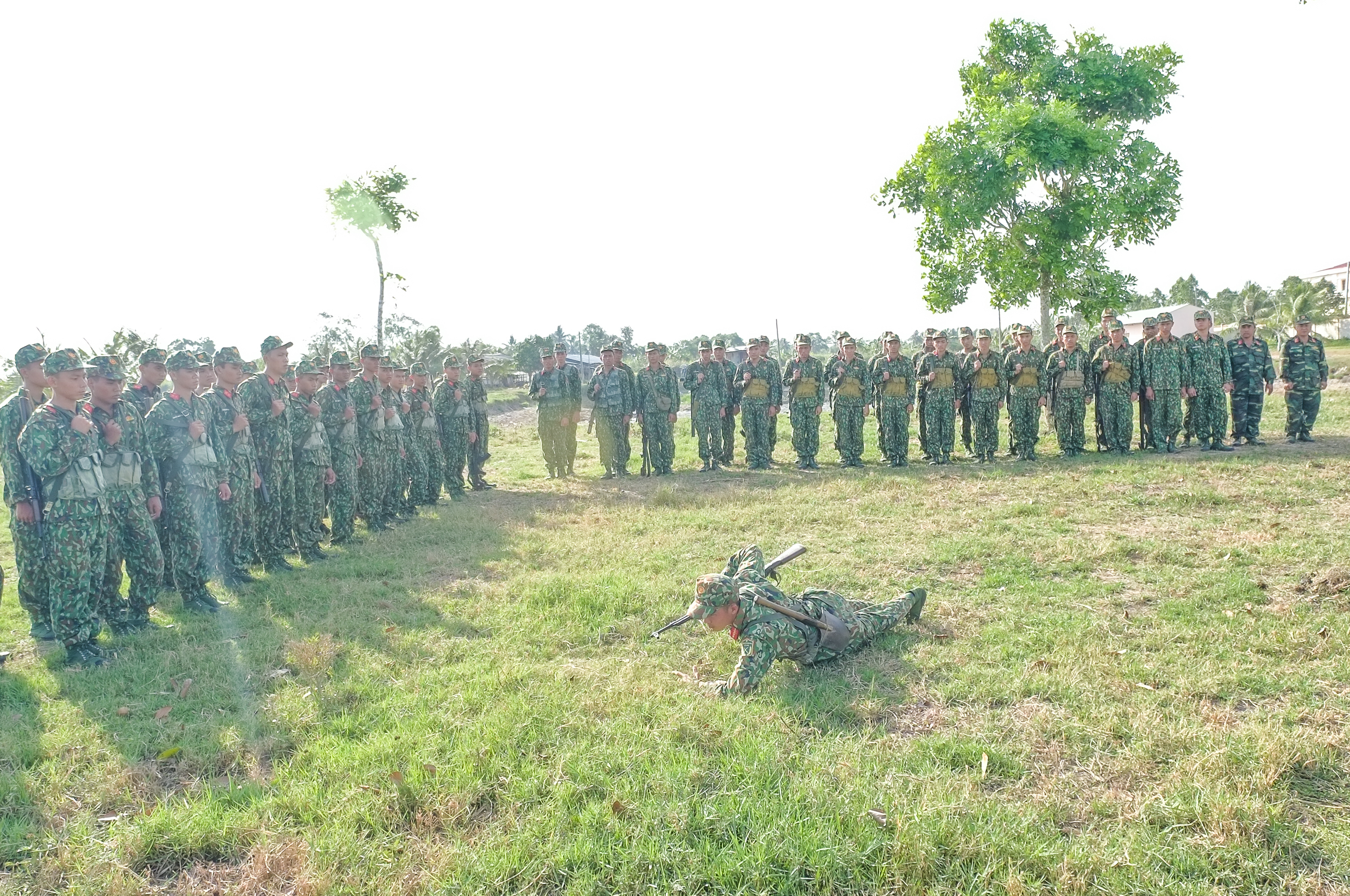Luyện tập động tác vận động trên chiến trường.