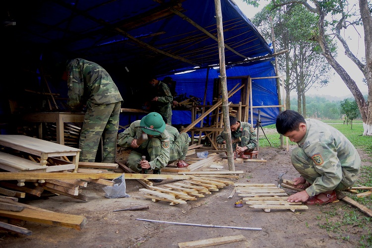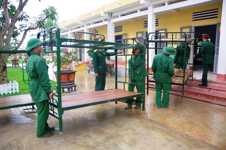 Cán bộ, chiến sĩ Tiểu đoàn 4, Trung đoàn 19 chuẩn bị nơi ở cho chiến sĩ mới