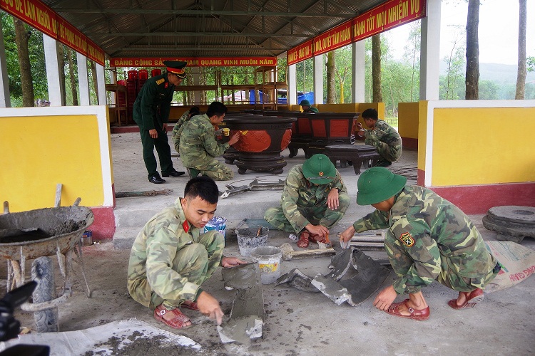 Cán bộ, chiến sĩ Tiểu đoàn 5, Trung đoàn 19 củng cố thao trường bãi tập