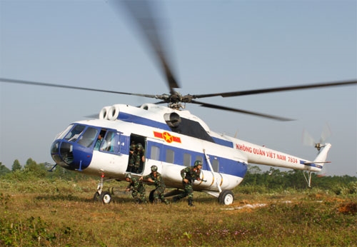 Trong đó, trực thăng của Trung đoàn đảm nhiệm đổ bộ "quân địch" xuống trận địa.