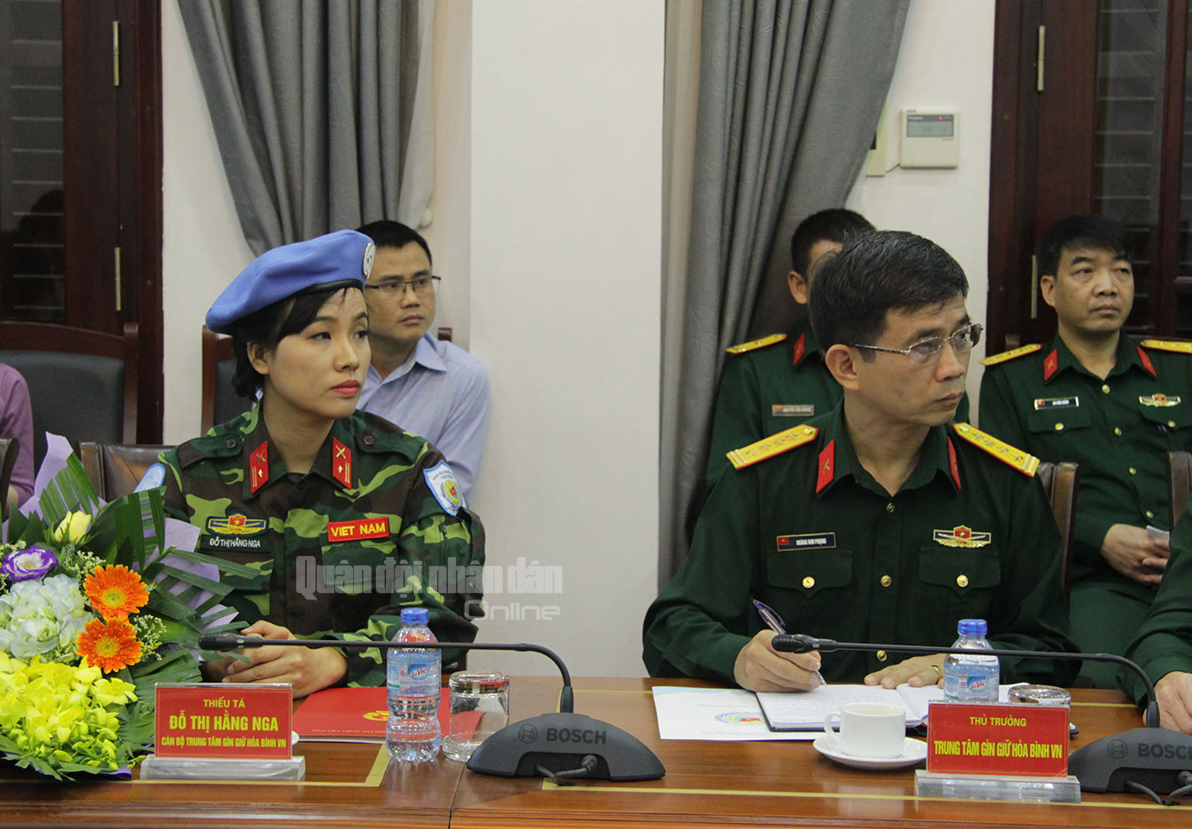QĐND Online – Ngày 30-10, thừa ủy quyền của Chủ tịch nước, Thượng tướng Nguyễn Chí Vịnh, Ủy viên Trung ương Đảng, Ủy viên Thường vụ Quân ủy Trung ương, Thứ trưởng Bộ Quốc phòng đã trao quyết định và giao nhiệm vụ cho Thiếu tá Đỗ Thị Hằng Nga, sĩ quan thuộc Trung tâm Gìn giữ hòa bình (GGHB) Việt Nam, lên đường làm nhiệm vụ tại Phái bộ GGHB Liên hợp quốc (LHQ) tại Nam Xu-đăng. Thiếu tá Đỗ Thị Hằng Nga là cán bộ thứ 20 và là nữ sĩ quan đầu tiên của Quân đội nhân dân Việt Nam tham gia lực lượng GGHB LHQ.