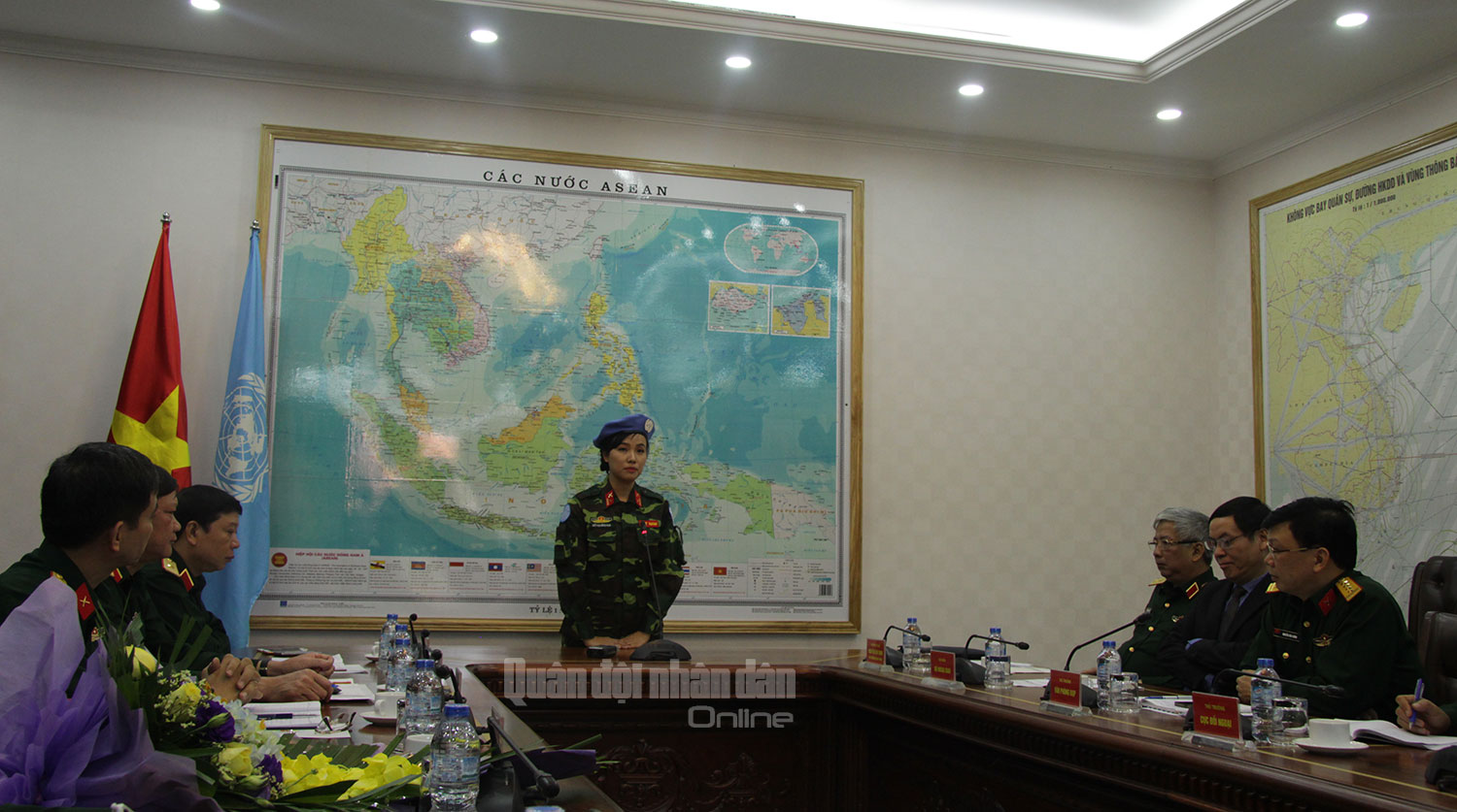 Thiếu tá Đỗ Thị Hằng Nga quyết tâm vượt qua mọi khó khăn để hoàn thành tốt nhiệm vụ là Sĩ quan tham mưu quân sự theo dõi các hoạt động quân sự của Phái bộ GGHB LHQ tại Nam Xu-đăng mà Nhà nước, Bộ Quốc phòng giao phó.