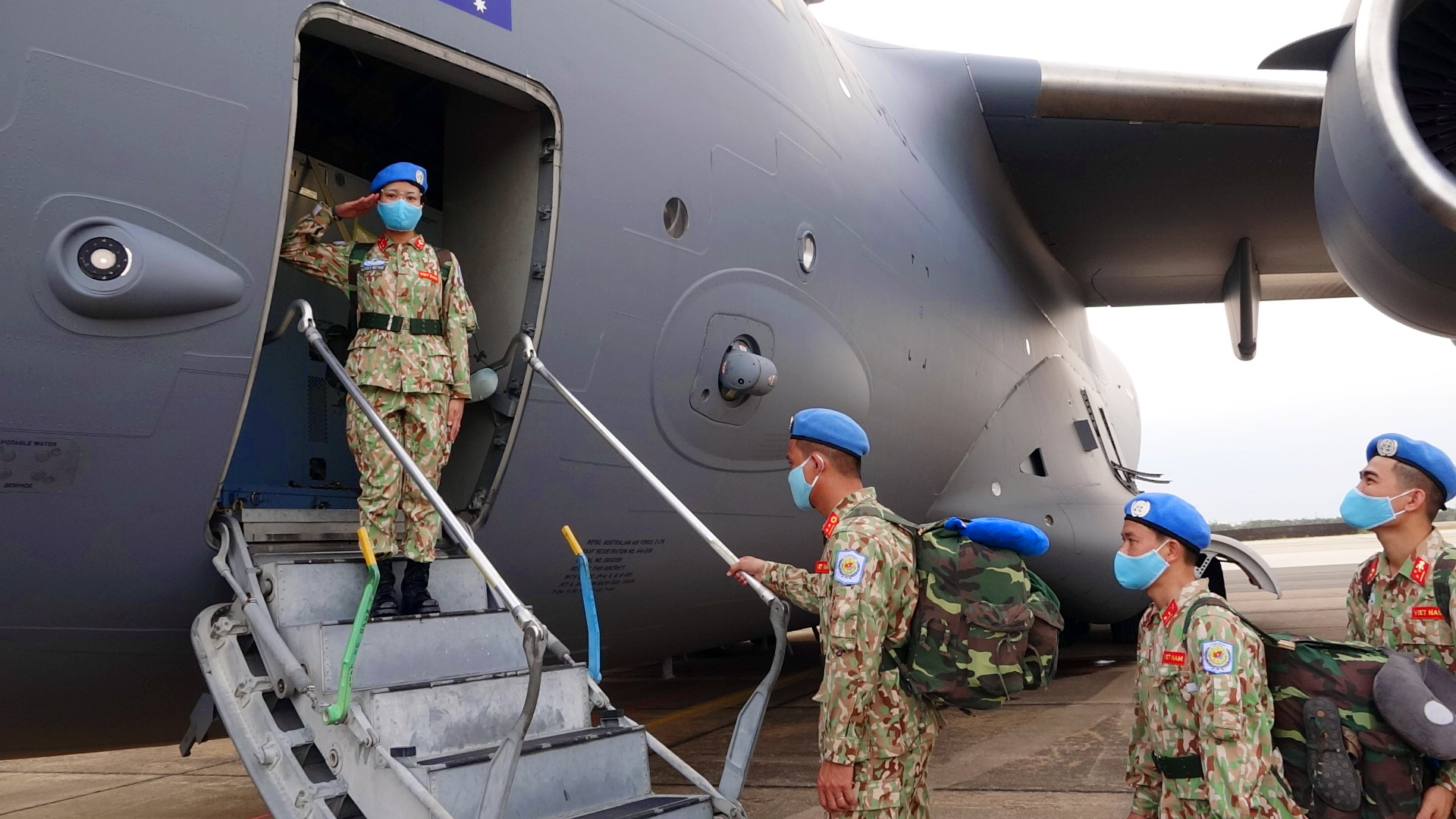 QĐND Online – Đúng 18 giờ 20 phút ngày 24-3, máy bay vận tải quân sự C-17 của Không quân Hoàng gia Australia đã cất cánh từ sân bay quốc tế Tân Sơn Nhất đưa các cán bộ, nhân viên Bệnh viện Dã chiến cấp 2 số 3 (BVDC 2.3) của đợt 1 chính thức lên đường thực hiện nhiệm vụ gìn giữ hòa bình Liên hợp quốc (GGHB LHQ) tại Nam Sudan.
