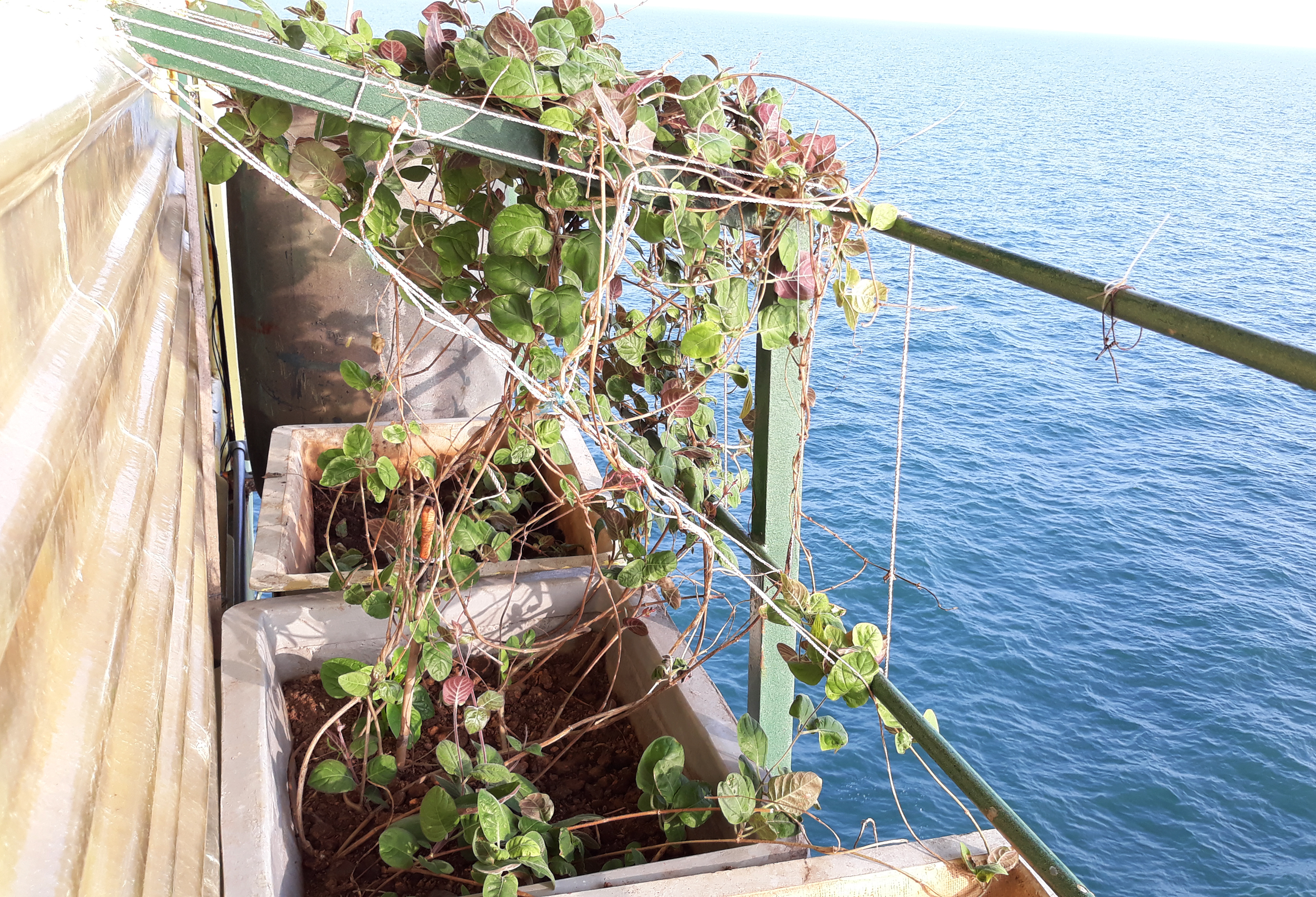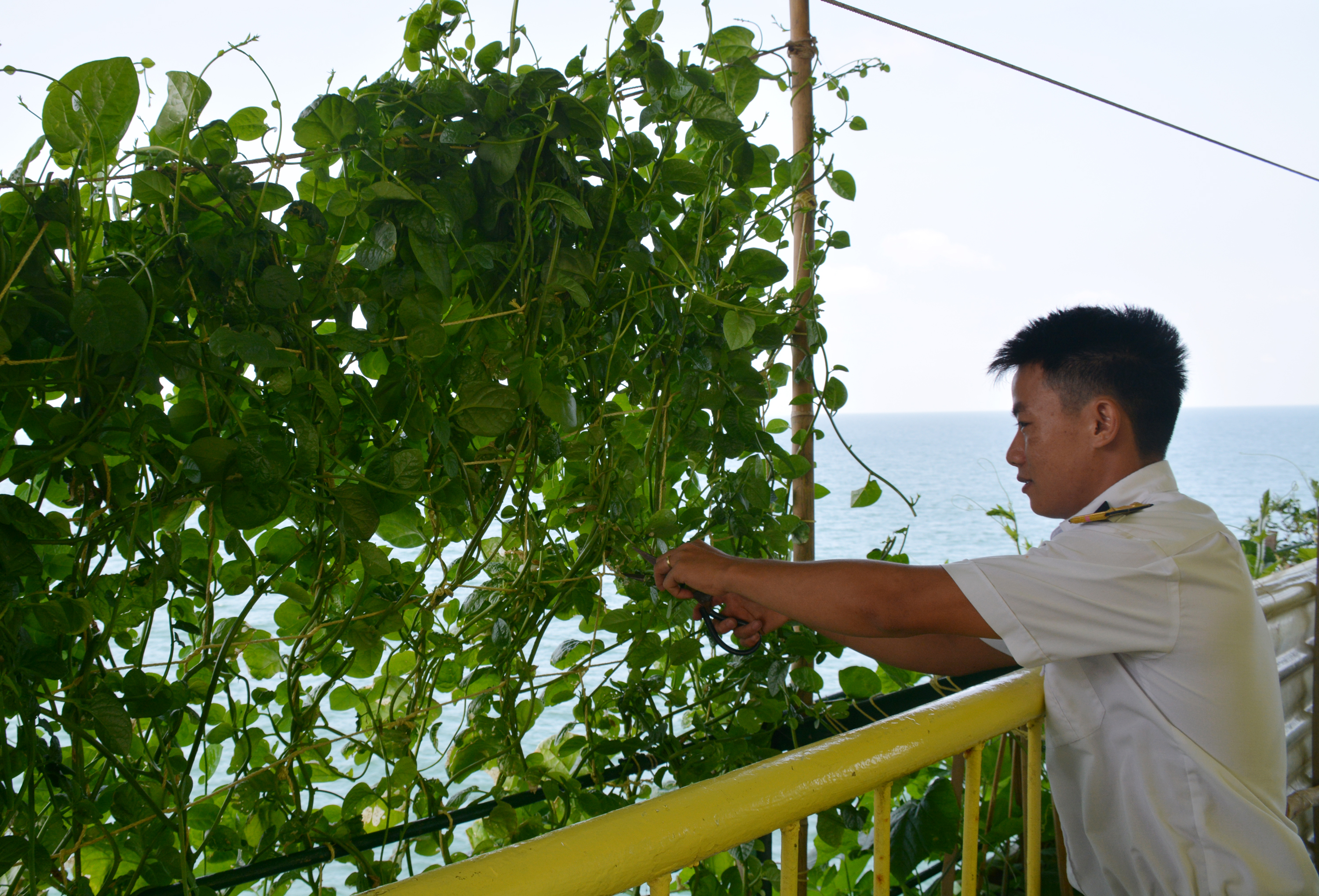 Nắng như nung, gió biển ào ạt và hơi nước mặn quanh năm là nguy cơ thường trực làm nhàu nát, héo úa các loại cây trồng. Nếu không kiên trì, nhẫn nại và không có kiến thức thì việc tăng gia trên nhà giàn là điều không thể.