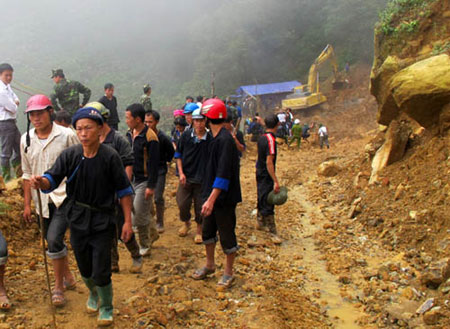 Tìm kiếm khắc phục hậu quả sạt lở đất tại bản Trống Páo Sang, xã La Pán Tẩn ( Mù Cang Chải, Yên Bái).