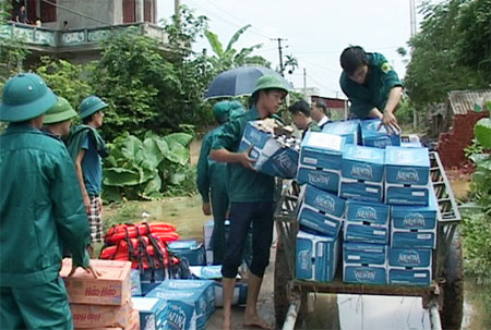 Bộ đội và dân quân tự vệ huyện Yên Định (Thanh Hóa) giúp dân vùng lũ sớm ổn định cuộc sống.