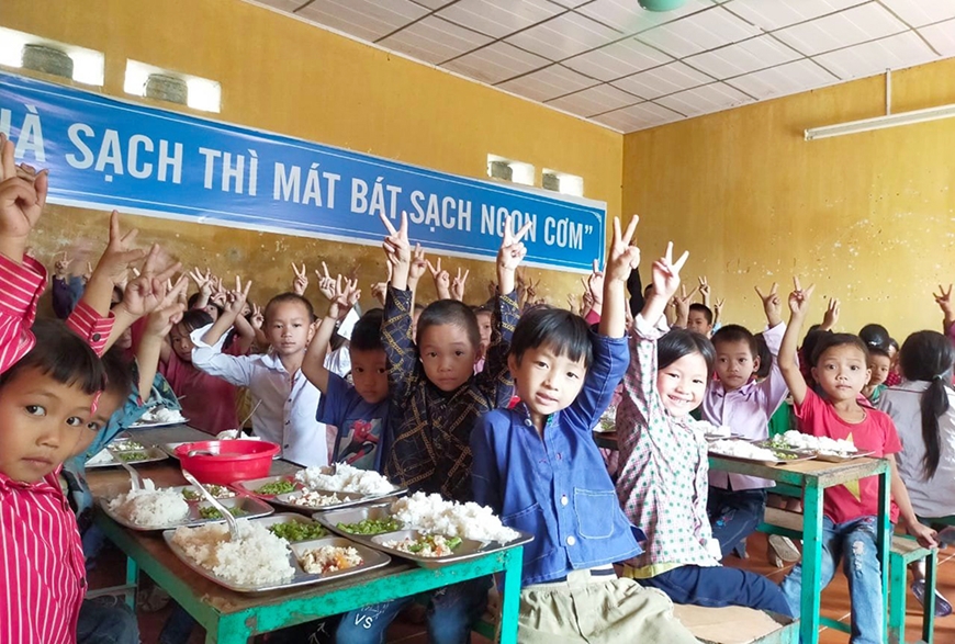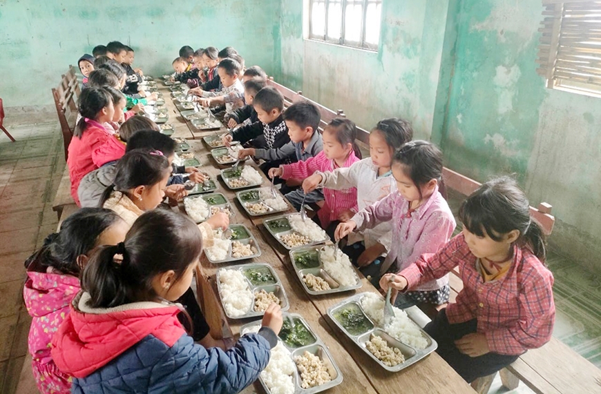 | Một bữa ăn của các em học sinh ở Trường PTDTBT TH&THCS Tụ Nhân (xã Tụ Nhân, huyện Hoàng Su Phì, tỉnh Hà Giang). Nguồn: NVCC |