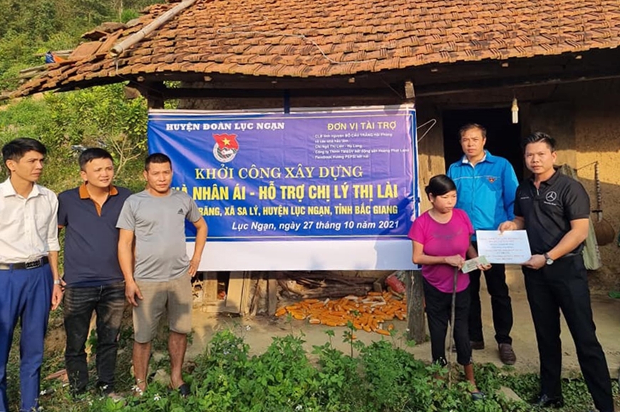 | Đại diện CLB Bồ Câu Trắng-Hải Phòng và các nhà tài trợ trao tiền hỗ trợ xây Nhà nhân ái cho một gia đình khó khăn ở tỉnh Bắc Giang. Ảnh: NVCC |
