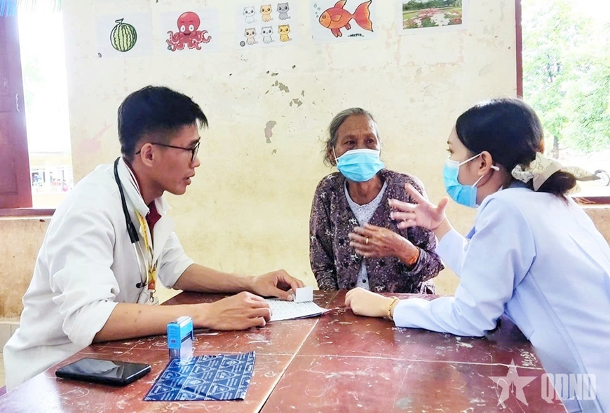 | Bác sĩ trẻ Nròng K'Duy Py (bên trái) tham gia khám bệnh miễn phí giúp người dân. |