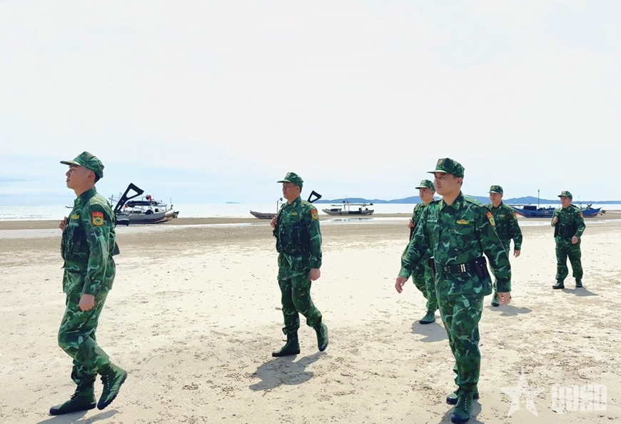 | Thiếu tá Nguyễn Văn Thành chỉ huy lực lượng đi tuần tra tại khu vực bờ biển do đơn vị phụ trách quản lý. |