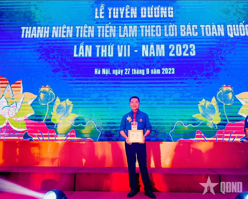 Anh Huỳnh Văn Đẳng nhận tuyên dương "Thanh niên tiên tiến làm theo lời Bác toàn quốc" năm 2023.