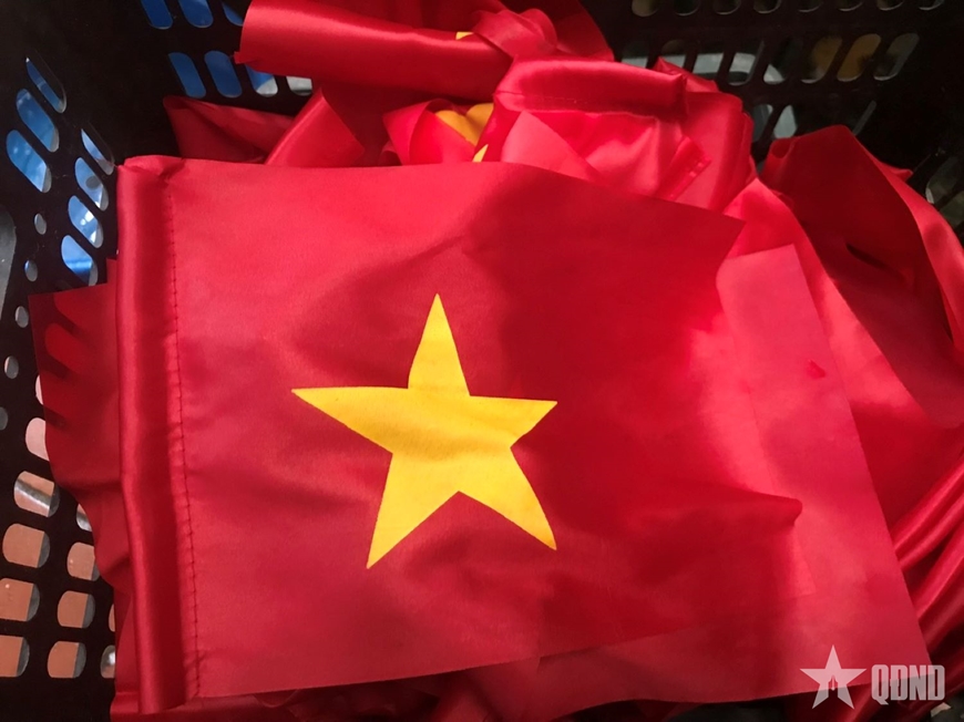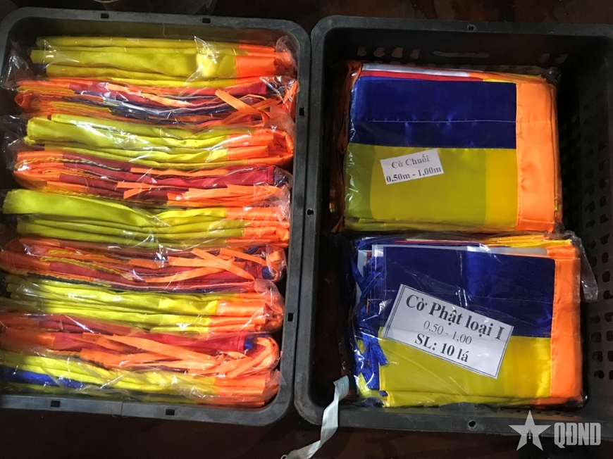 Đa dạng các mẫu cờ tại xưởng may đang chờ được giao cho khách hàng.