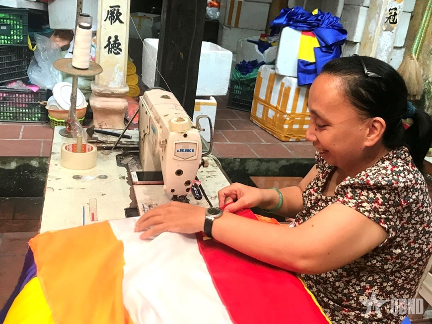 Chị Phạm Thu Hiền (42 tuổi, Hà Nội) cũng có chung niềm xúc động. Bị liệt nửa người sau tai nạn năm 19 tuổi, tưởng như tương lai khép lại, nay chị đã có thể may nên những lá cờ đẹp mắt. “Thầy kiên nhẫn chỉ dẫn tôi từng đường kim mũi chỉ. Nhờ vậy mà tôi có nghề, có thu nhập, thấy cuộc sống tốt đẹp hơn nhiều”, chị chia sẻ.
