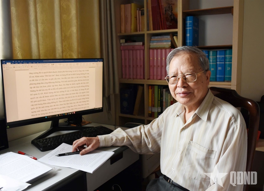 GS, TS Nguyễn Trọng Chuẩn ở tuổi 86 vẫn đam mê tìm hiểu thông tin, làm việc hằng ngày.